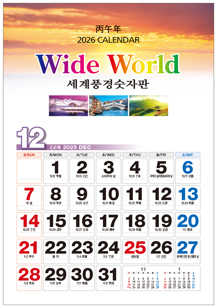 1-502 와이드 월드 500mm x 710mm x 13매 관련링크 목록 본문 • 상호란 : 400mm x 70mm• 제본 : 금구• 인쇄 : 옵셋 4도• 지질 : 아트원터치 뜯김으로 깔끔하게 사용가능• 본 카렌다에는 음력 · 일진 · 절후가 표기되어 있습니다. 이전 다음