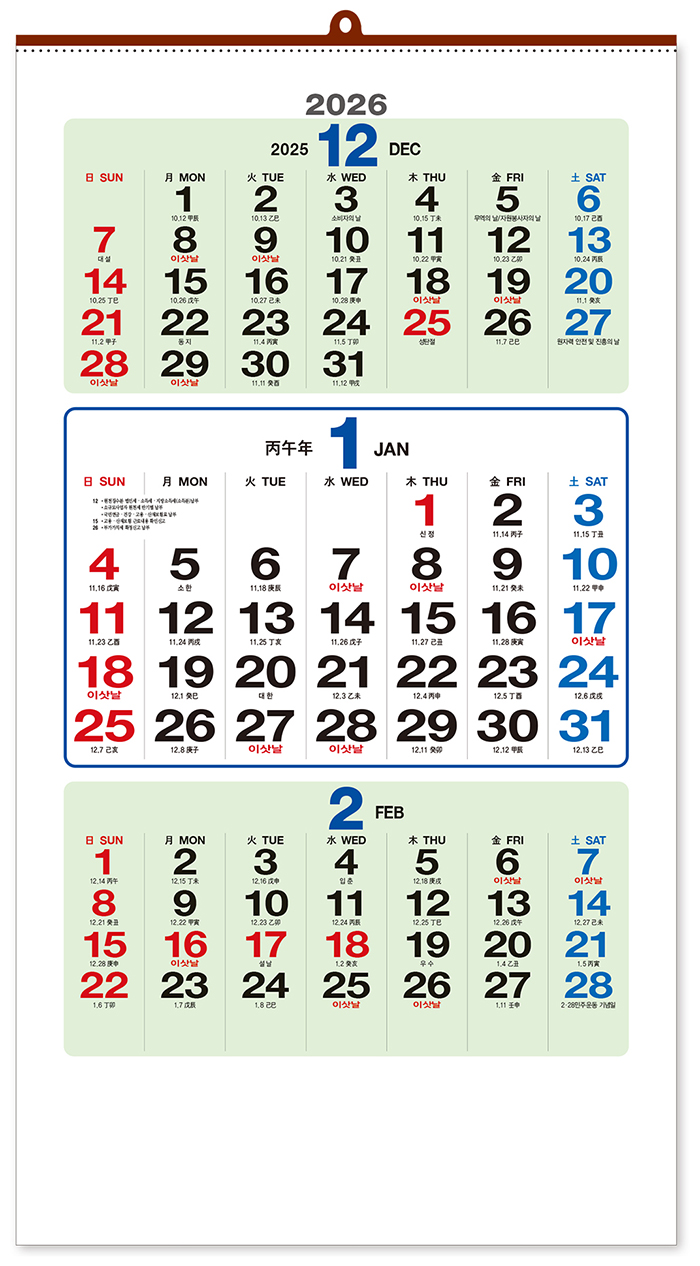 1-506 삼단 이삿날 숫자판 385mm x 700mm x 13매 관련링크 목록 본문 385mm x 700mm x 13매• 상호란 : 300mm x 60mm• 제본 : 금구• 인쇄 : 옵셋 4도• 지질 : 스노우화이트원터치 뜯김으로 깔끔하게 사용가능• 본 카렌다에는 음력 · 일진 · 절후가 표기되어 있습니다. 이전 다음