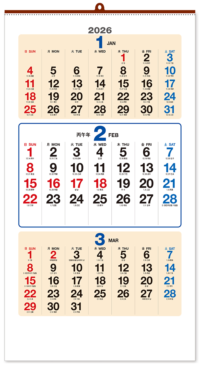 1-508 T3절 삼단 숫자판 385mm x 700mm x 13매 관련링크 목록 본문 • 상호란 : 300mm x 60mm• 제본 : 금구• 인쇄 : 옵셋 4도• 지질 : 스노우화이트원터치 뜯김으로 깔끔하게 사용가능• 본 카렌다에는 음력 · 일진 · 절후가 표기되어 있습니다. 이전 다음