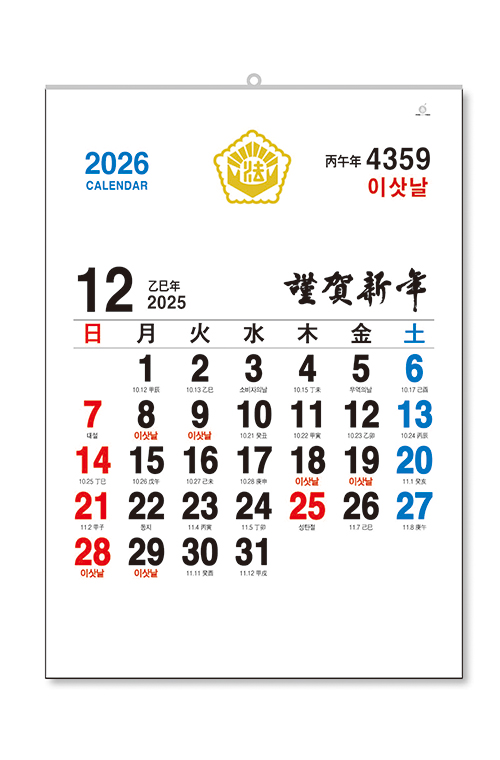 3-507 법무사 2절 숫자판 520mm x 780mm(2절) / 13매 관련링크 목록 본문 • 지질.인쇄 : 120g 모조지 / Offset 4도• 제본 : 금구• 상호란 : 440mm x 70mm※본 제품에는 음력, 절기 국경일이 표기되어 있습니다. 이전 다음