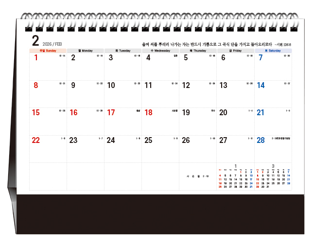 본 카렌다에는 기념일, 음력,절기,교회력이 표기되어 있습니다.
