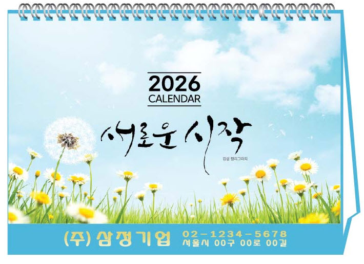 4-9호 새로운 시작 260 x 210mm / 14매 관련링크 목록 본문 • 제본 : 트윈스프링• 용지 : 스노우 180g• 인쇄 : 옵셋 8도• 상호란 : 180mm x 18mm(금박)*본 캘린더에는 음력,일진,절후가 표기되어 있습니다. 이전 다음